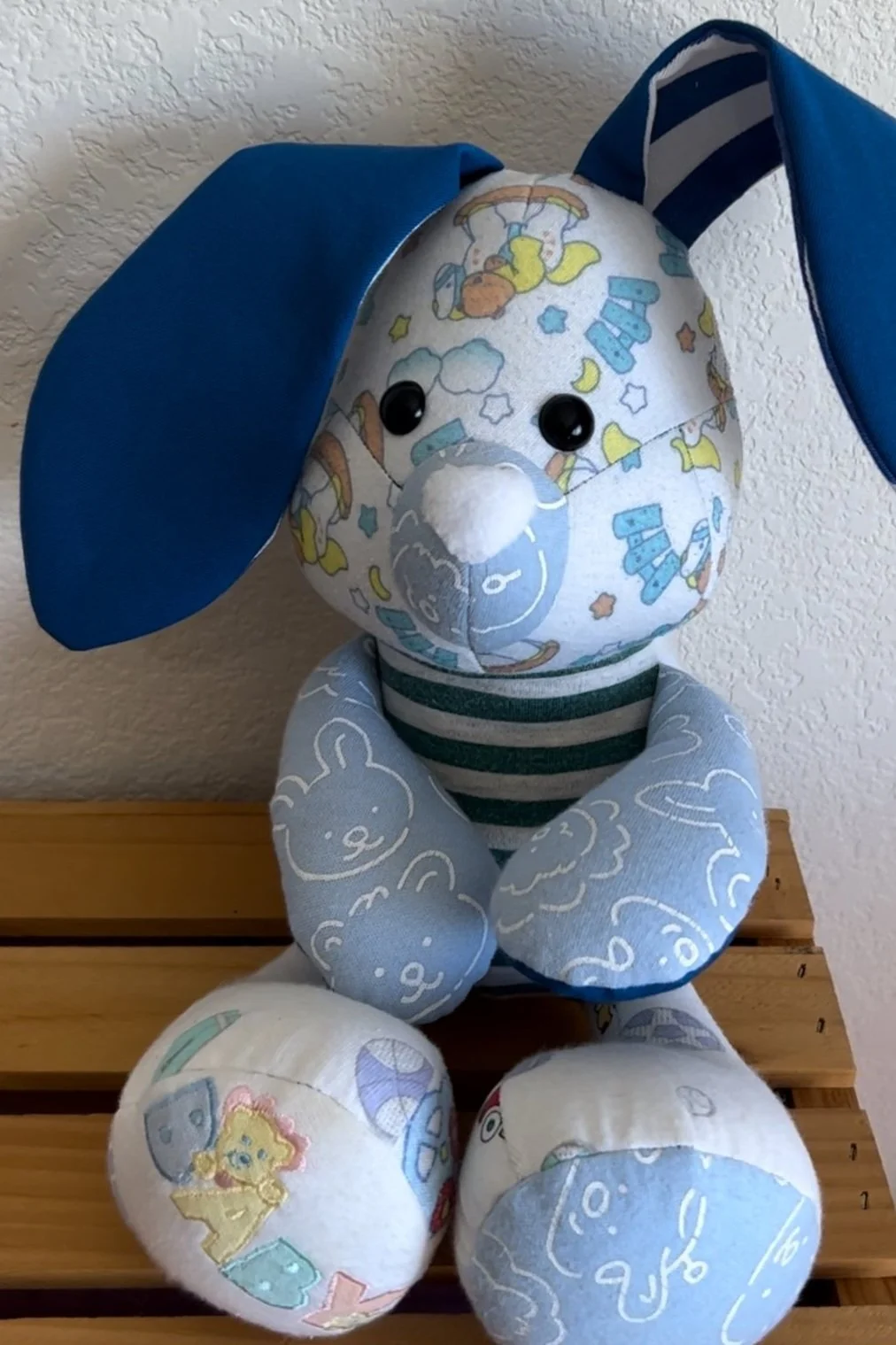 Each keepsake animal—whether a memory bear, bunny, lion, elephant, dog, or dino—is lovingly crafted from your provided clothing. To create your custom hand-crafted keepsake, please send either 1-2 adult-sized shirts or 6-8 baby clothing items